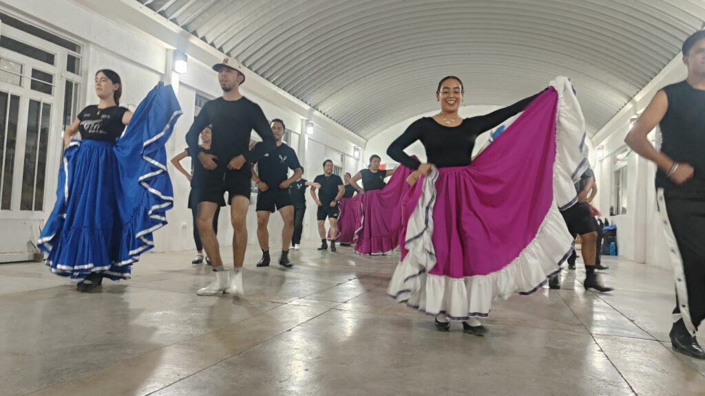 Estudiantes del Colegio de Bachilleres del Estado de Tamaulipas (COBAT) Plantel 23 “El Bayito”, del grupo de danza folclórica,…